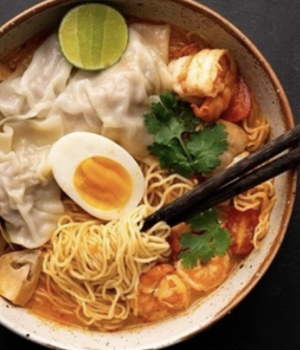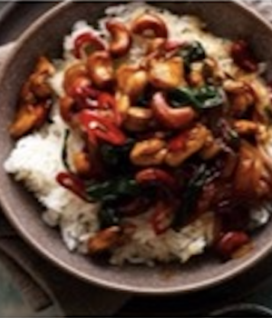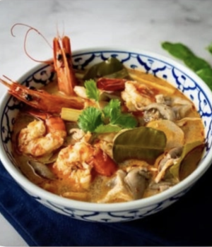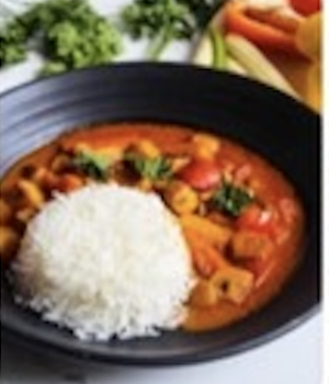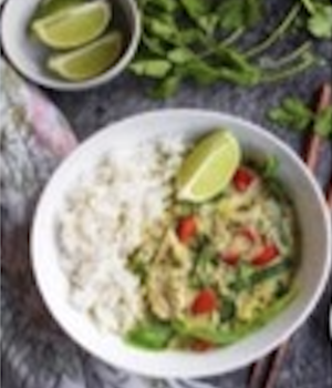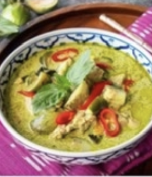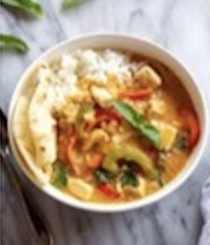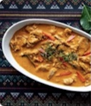 Reduced-fat coconut milk with vegetables and tender chicken.